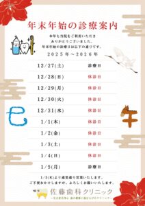 皆様が安心して年末年始をお過ごしいただけるよう、スタッフ一同、丁寧な診療を心がけてまいります。