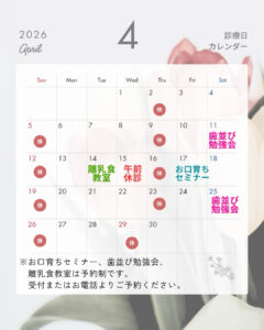 出産後、赤ちゃんのお口育ちでどんなところを見たら良いのか、歯医者さんにかかるタイミング、離乳食についてもお話します。